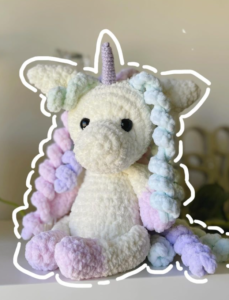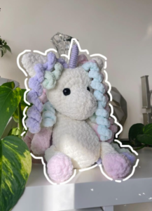 This was one of my first amigurumi makes way back in February and I’ve definitely gotten better now but I’m still so proud of it! 🤍🩷💜🩵💚